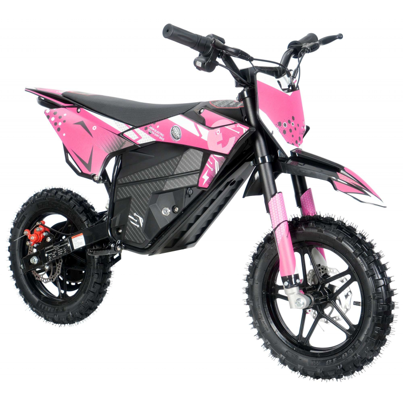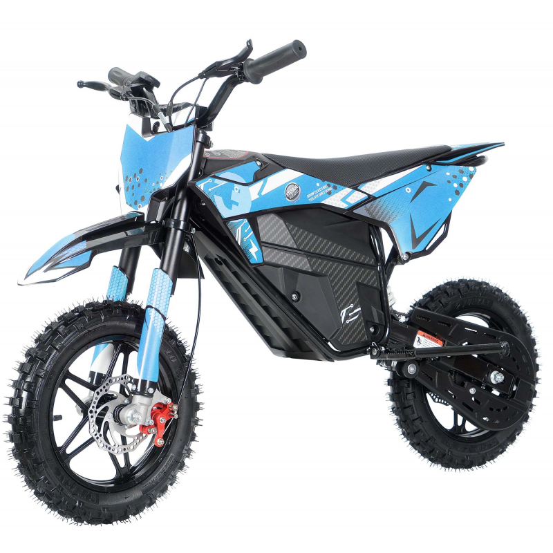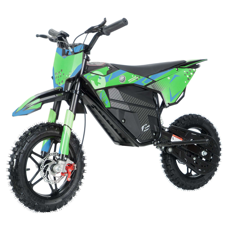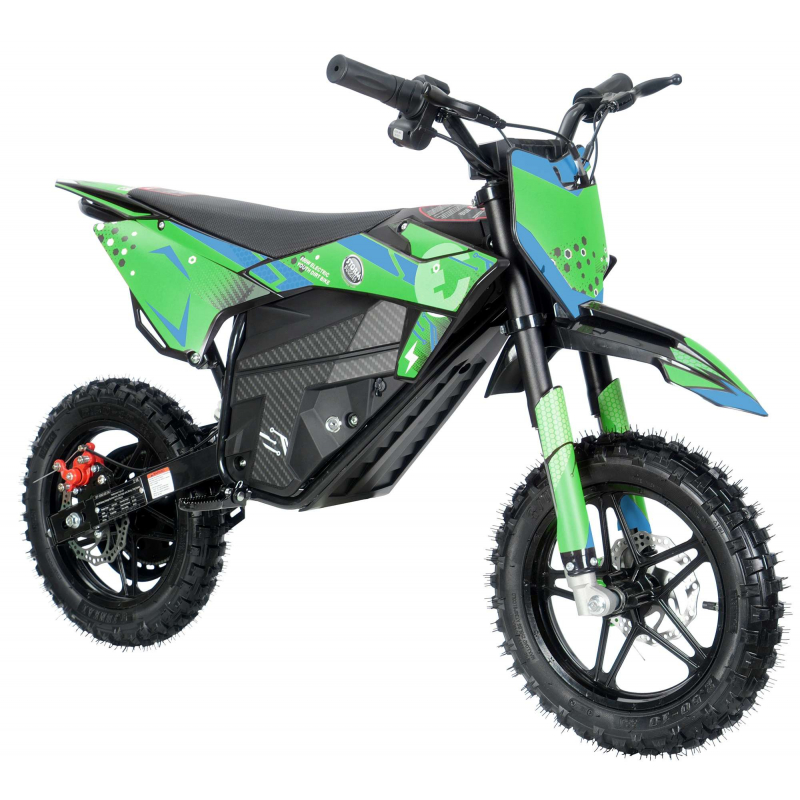 Kids 800w electric dirt bike with brushless motor, 36v 9Ah Lithium battery and 10/10 wheels.